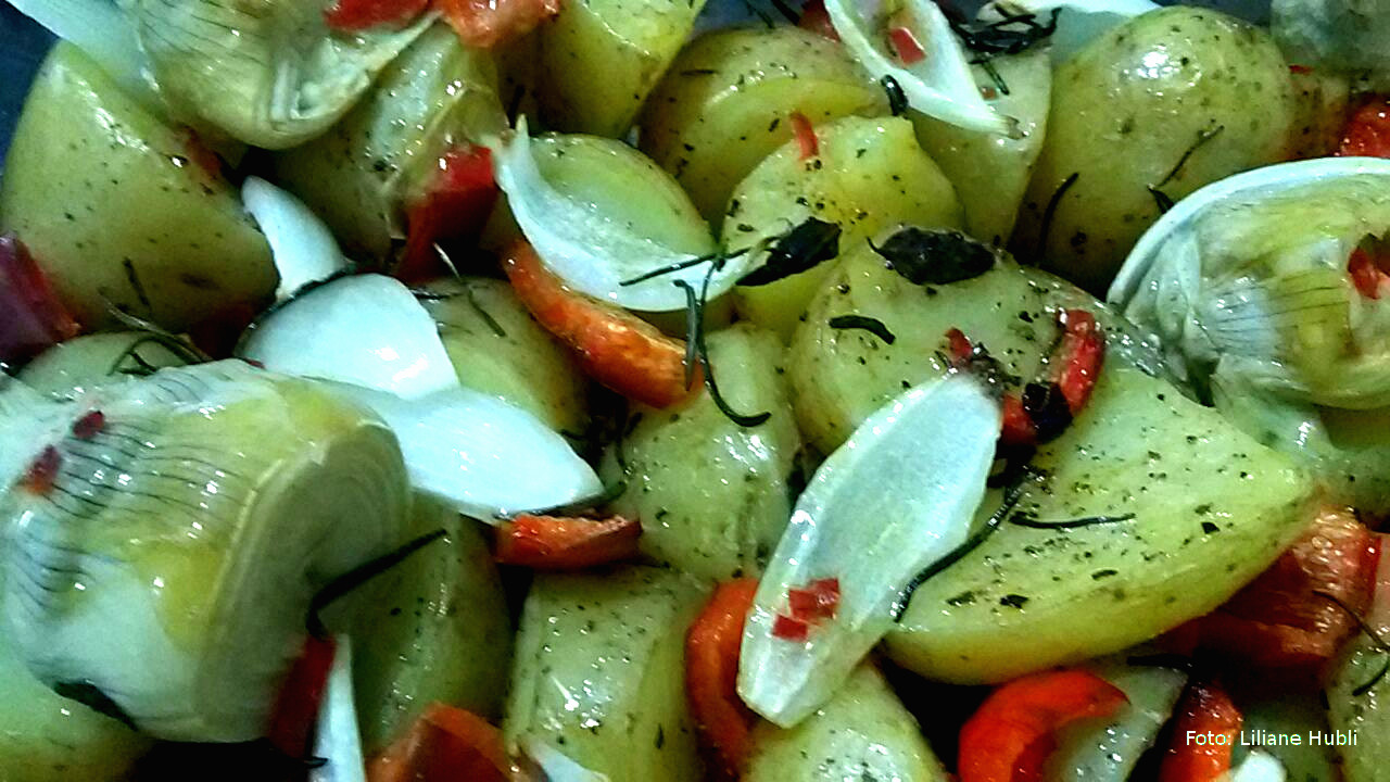 - 1/2 colheres (sopa) de ervas frescas, como orégano, salsa, tomilho e manjericão.